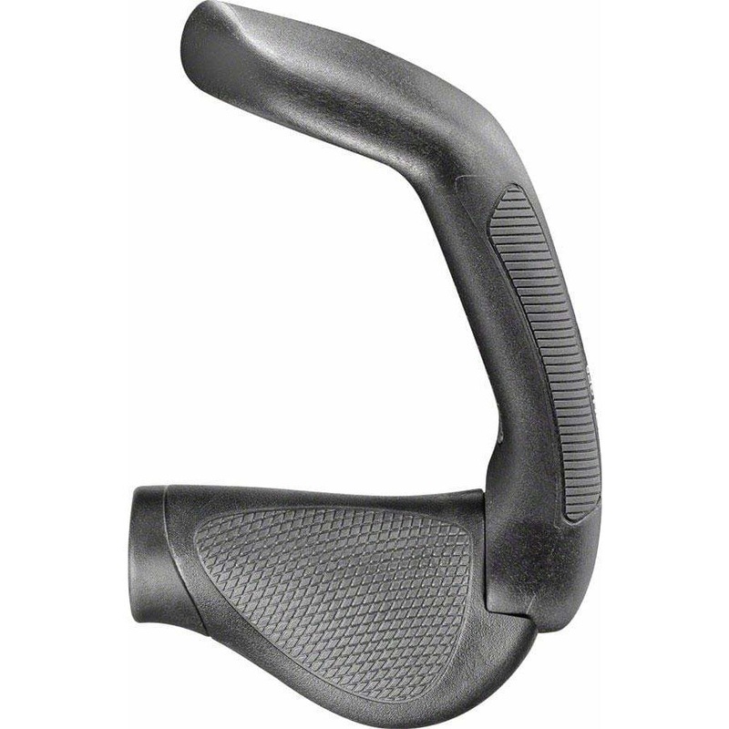 Combines a traditional Ergon hand platform with an extended L bend bar end for multiple riding positions.
